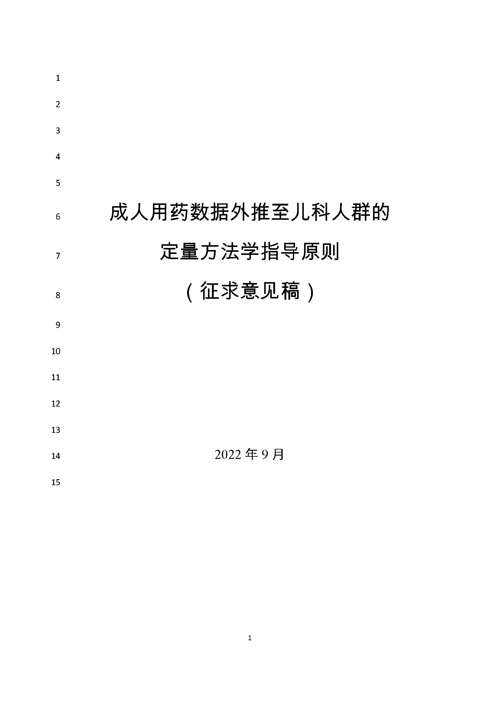關于《成人(rén)用(yòng)藥數(shù)據外(wài)推至÷ 兒(ér)科(kē)人(rén)群的(de)定₽™量方法學指導原則(征求意見(jiàn)稿)》公開(kāi)征求意見(j "iàn)的(de)通(tōng)知(zhī)