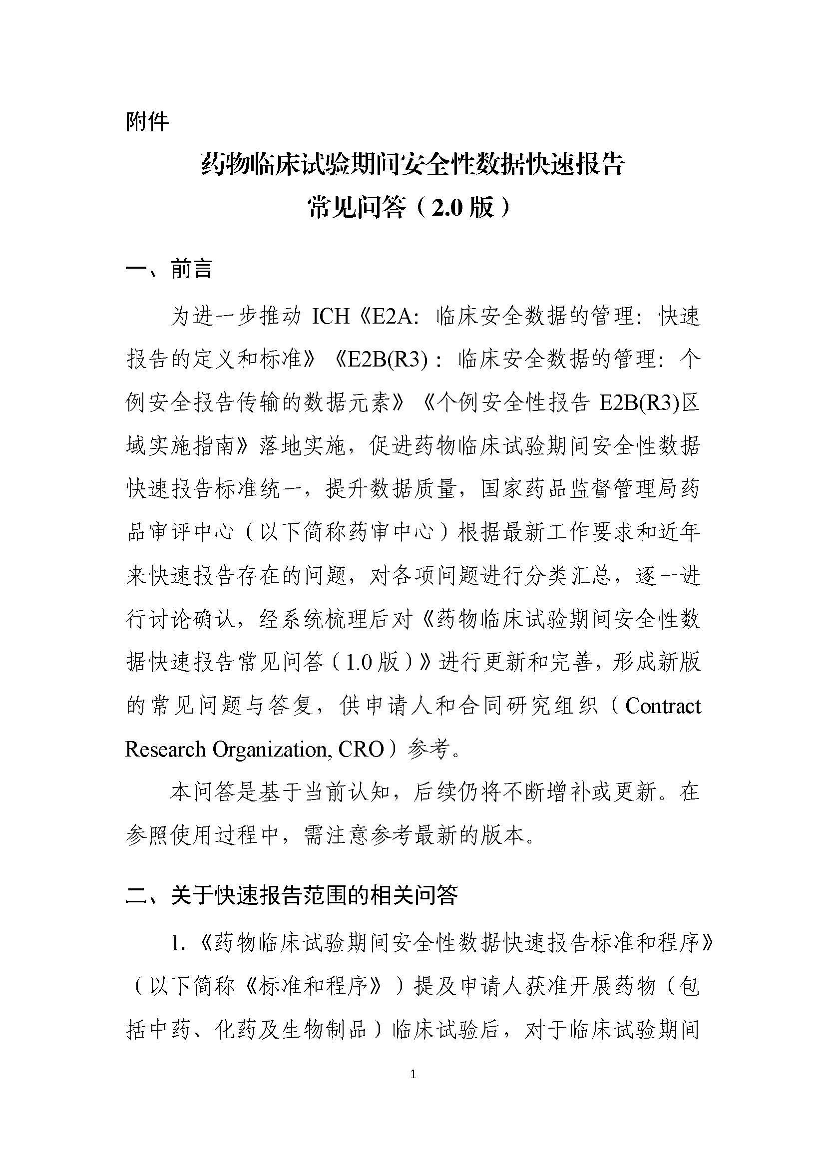 附件(jiàn):藥物(wù)臨床試驗期間(jiān)安全性數(sh δù)據快(kuài)速報(bào)告常見(jiàn)γ ∞問(wèn)答(dá)(2.0版)
