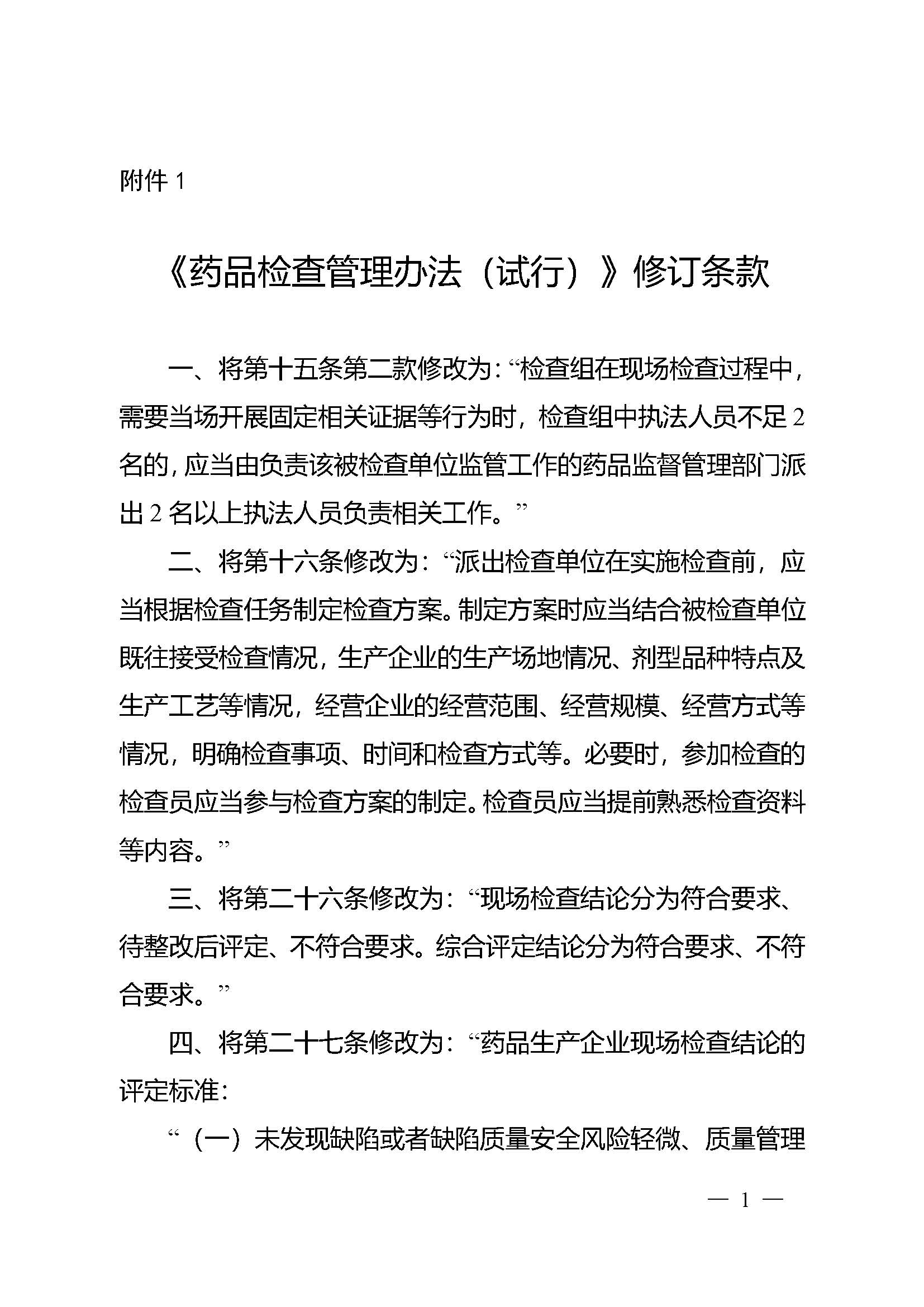 1.《藥品檢查管理(lǐ)辦法(試行(xíng))》修訂條款